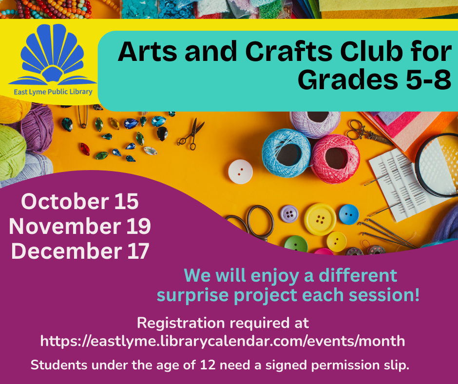 We meet on the second Wednesday of every month in the Storytime Room from 3:15-4:15pm.