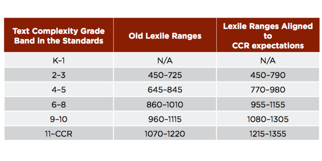 For a full explanation of this table, please refer to the article "Which Text Levels Should We Teach With" by Timothy Shanahan.